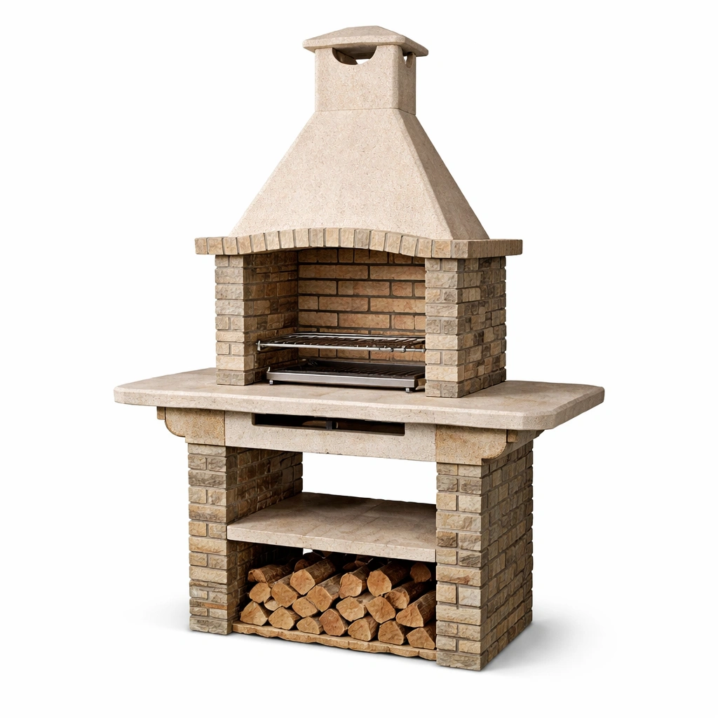 Chimenea para ventilación, espacio de almacenamiento para leña.